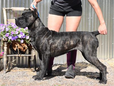 CASTLEGUARD’S WILD IRISH WAY WS72426411 AKC CH 2021/04/09 Grey brindle/Grigio tigrato PennHip OFA Normal YYYY/MM/DD